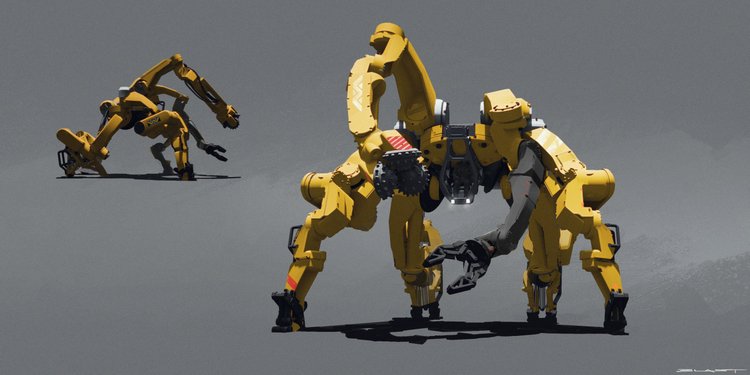 Early designs for the Weyland-Yutani Super Power Loader by Benjamin Last for Dan Trachtenberg's Predator: Badlands.